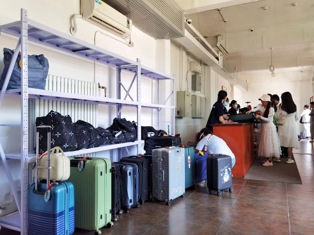 观众在故宫博物院观众服务中心办理行李物品寄存。 新华社记者杨湛菲 摄