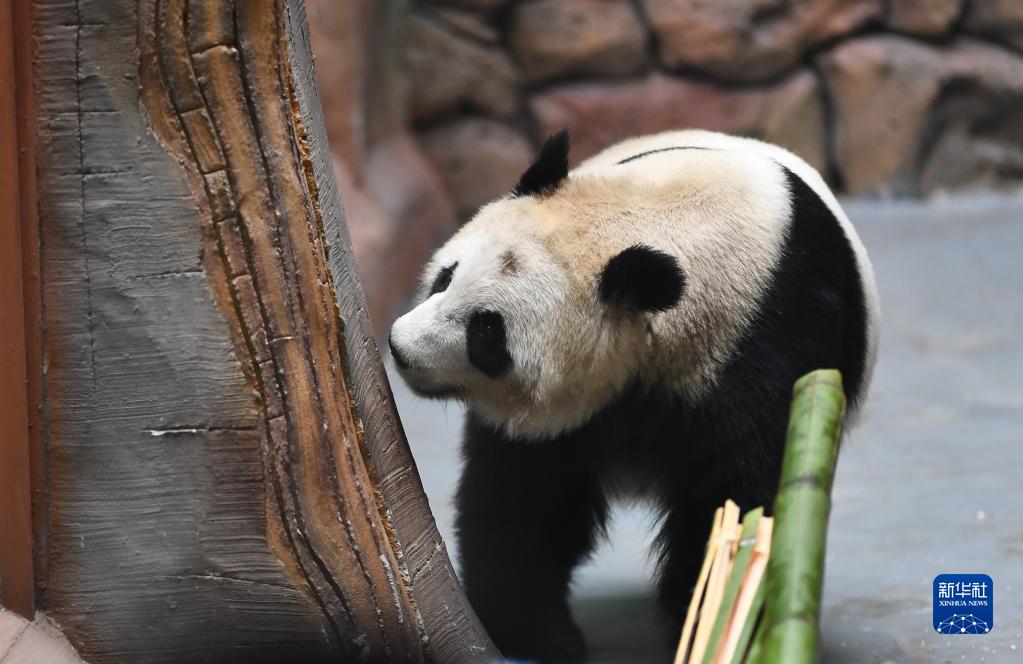 7月1日,一只大熊猫在西宁熊猫馆活动。