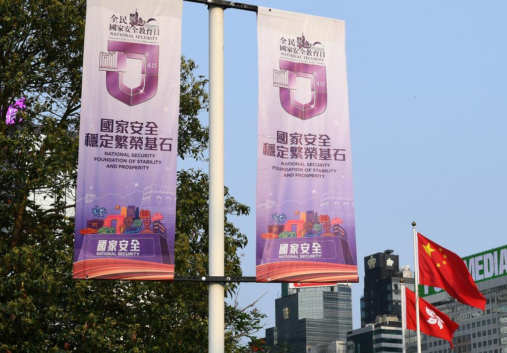 这是4月12日在香港街头拍摄的“全民国家安全教育日”主题宣传海报。新华社记者 陈铎 摄