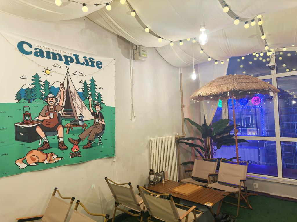 哈尔滨市的一家露营风格的烧烤店一隅。新华社记者朱悦 摄