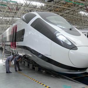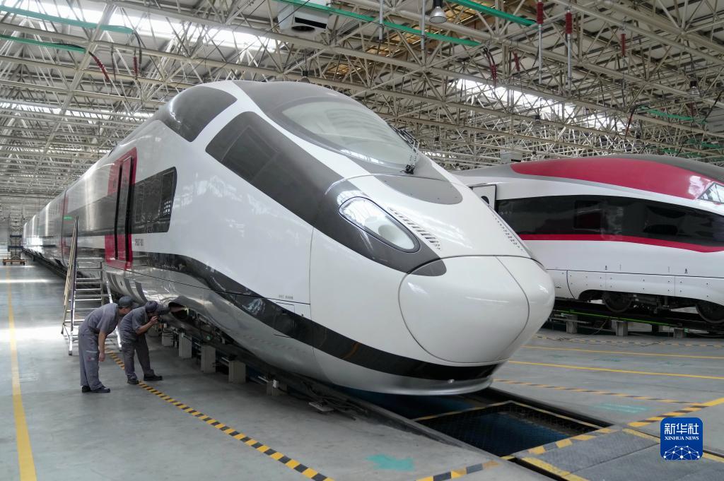 7月1日,河北省唐山市丰润区中车唐山公司的工人在动车组调试车间工作。