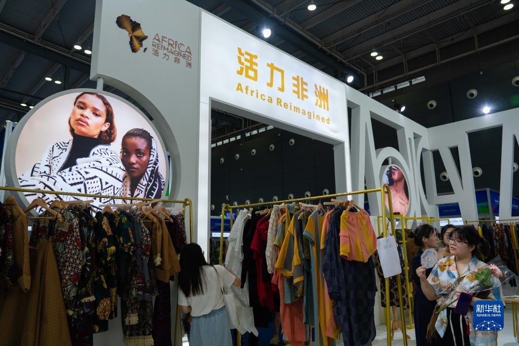 7月1日,在第三届中国-非洲经贸博览会上,人们选购非洲服装。
