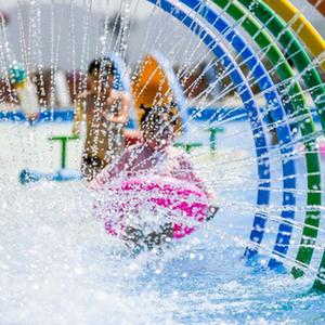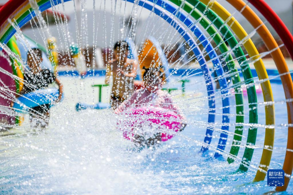 7月1日,小朋友在河北省遵化市娘娘庄镇水上乐园戏水避暑。