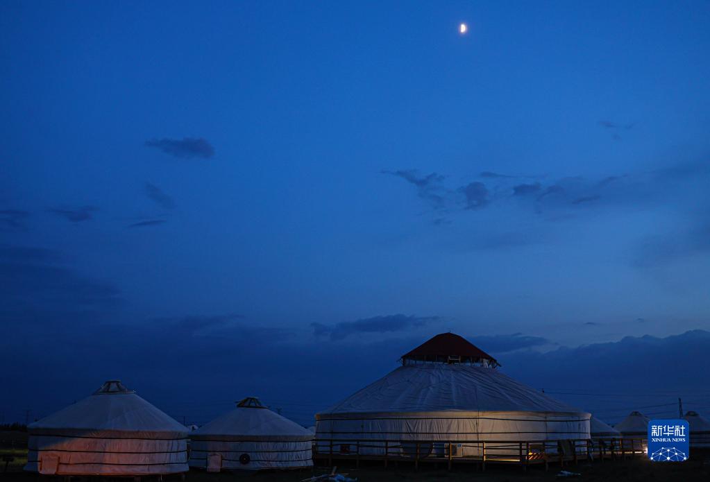 6月26日在呼伦贝尔市鄂温克族自治旗拍摄的夜幕下的蒙古包。