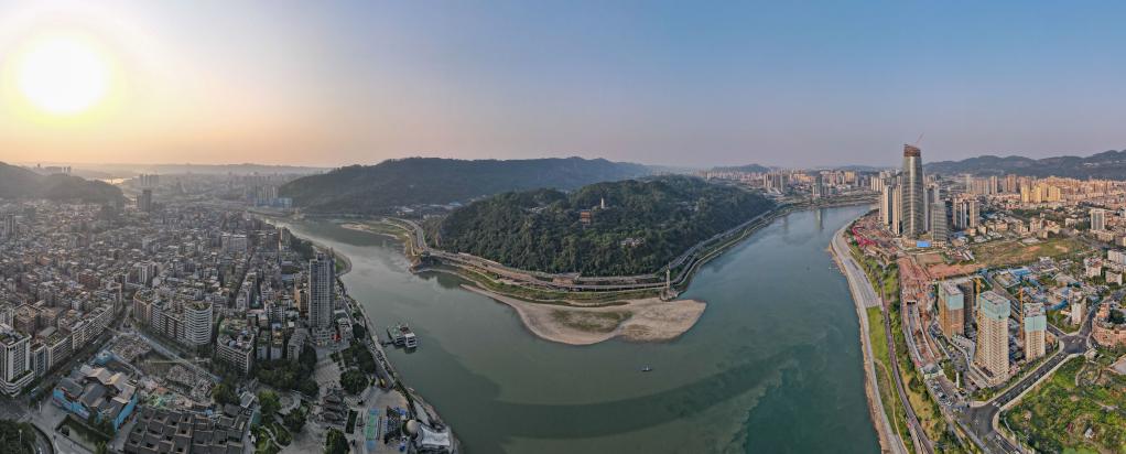 图为四川省宜宾市三江口景色(无人机全景照片)。新华社记者胥冰洁 摄