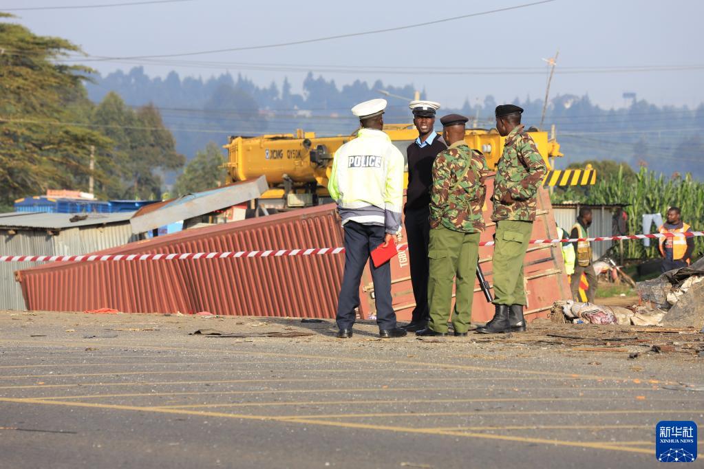 7月1日,警察在肯尼亚西北部凯里乔郡隆迪亚尼镇附近的车祸现场工作。