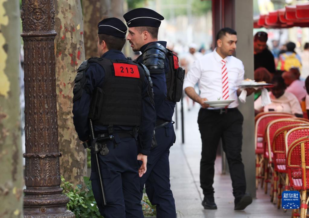 7月2日晚间,警察在法国巴黎香榭丽舍大道上巡逻。
