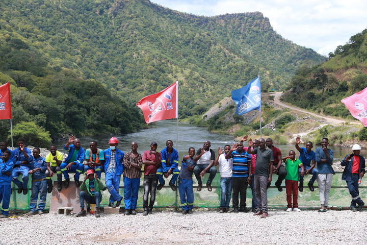 3月24日,在赞比亚南方省,中国电力建设集团有限公司的赞比亚员工参加下凯富峡水电站5号机组发电仪式。 新华社记者 彭立军 摄