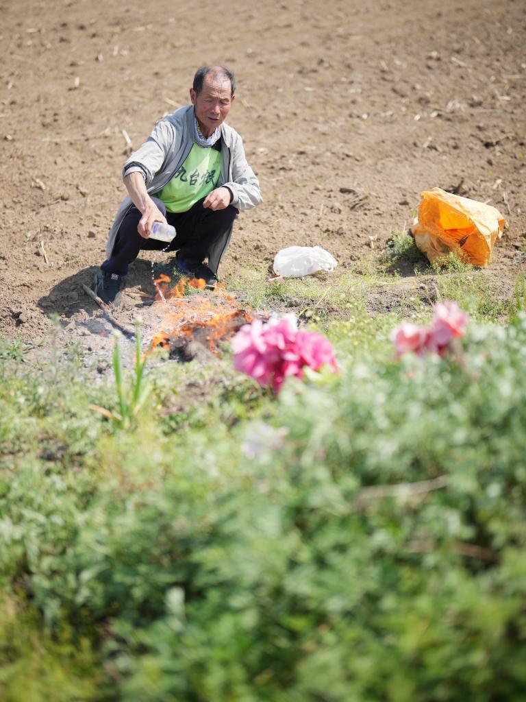 蹲在夏树云的坟前,奚占玉往火里添着黄纸钱。