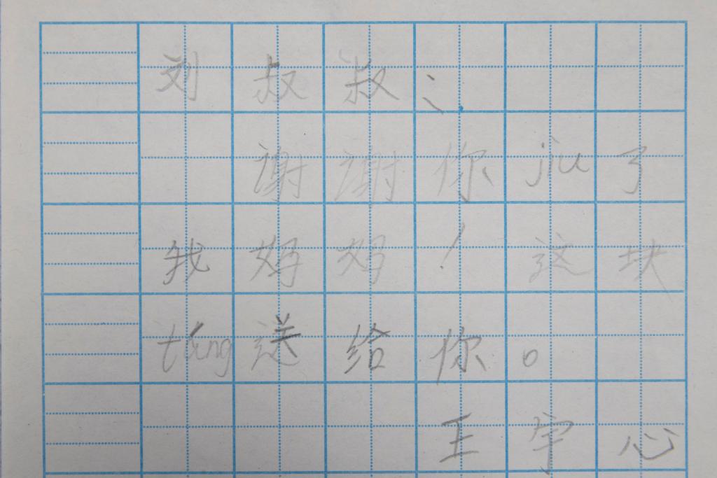 这是2022年1月9日在七台河市桃山区拍摄的一位小朋友写给刘欣的感谢信。新华社记者 张涛 摄
