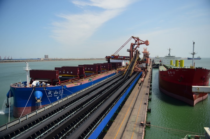 2023年6月27日,船舶在黄骅港煤炭港区装运电煤。新华社发(傅新春摄)