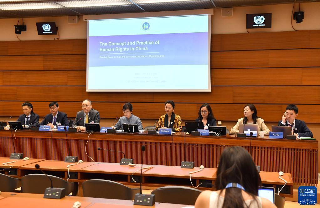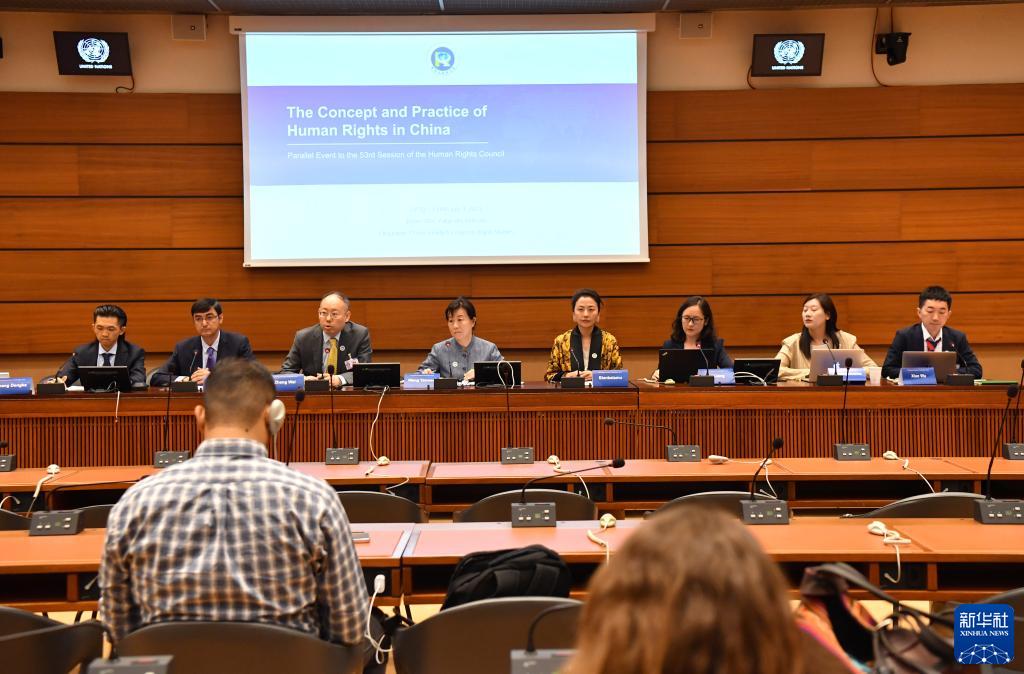 新华社日内瓦7月3日电(记者聂晓阳)在联合国人权理事会第53届会议举行之际,中国人权研究会3日在日内瓦万国宫举行“中国的人权理念与实践”主题边会,有关专家在会上就中国人权教育、新疆妇女权益、西藏活佛转世制度与宗教信仰自由、中国式现代化与中国人权事业发展、所谓“强迫劳动”的涉疆谎言、新疆的语言文字保护与发展、西藏地方和祖国关系的历史真相等话题介绍了情况。