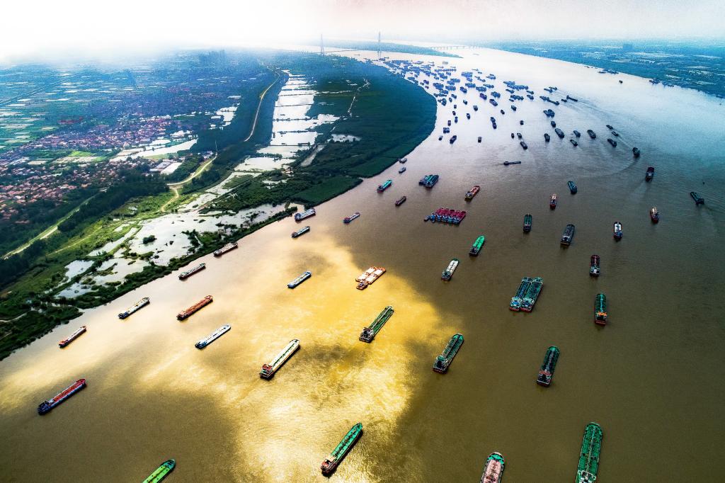 船舶在武汉阳逻港区水域行驶。新华社记者肖艺九 摄