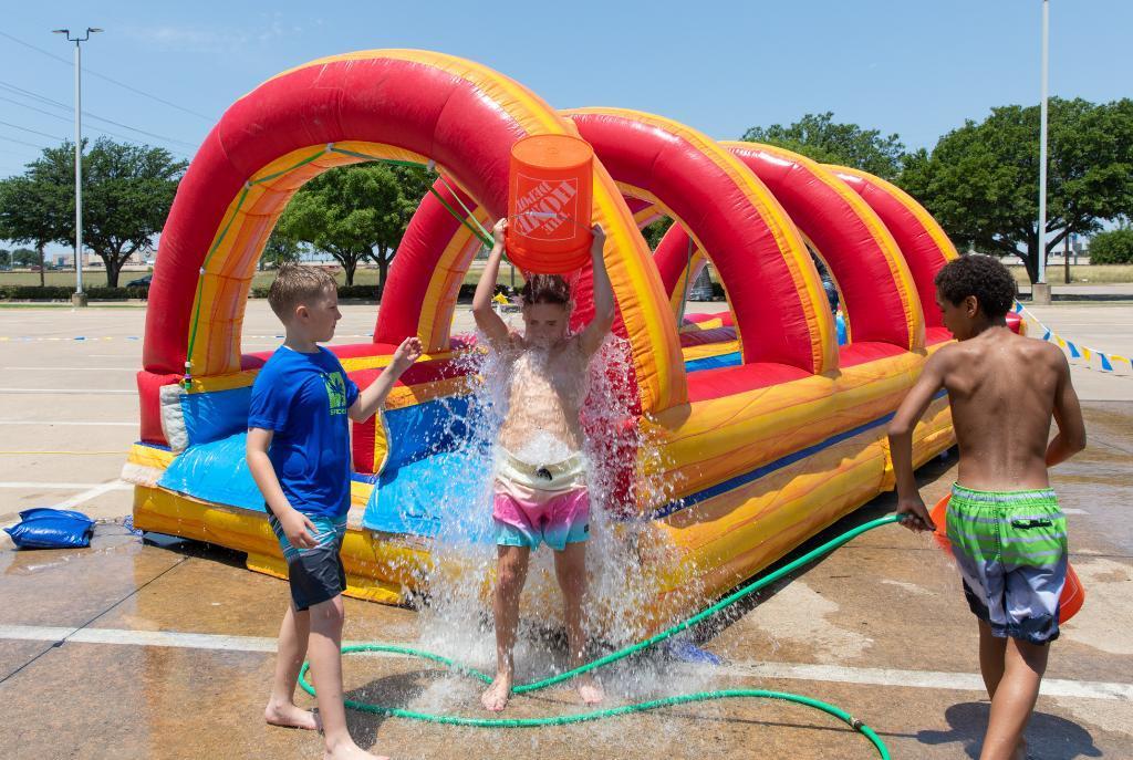2023年6月27日,在美国得克萨斯州达拉斯市郊,儿童在玩水。近日,美国得克萨斯州迎来高温天气,达拉斯气温达到华氏115度(约合46摄氏度)。新华社发(田丹摄)