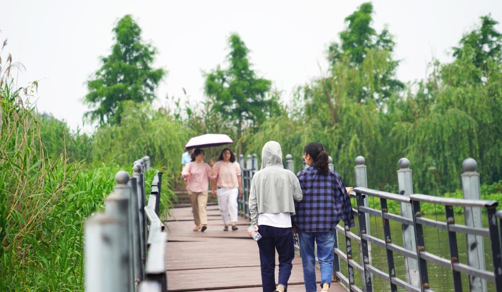 游客在崇湖生态步道散步。新华社记者龚联康 摄