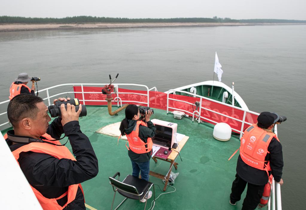 2022年9月23日,科考人员在湖北石首水域进行观测工作。新华社记者 肖艺九 摄