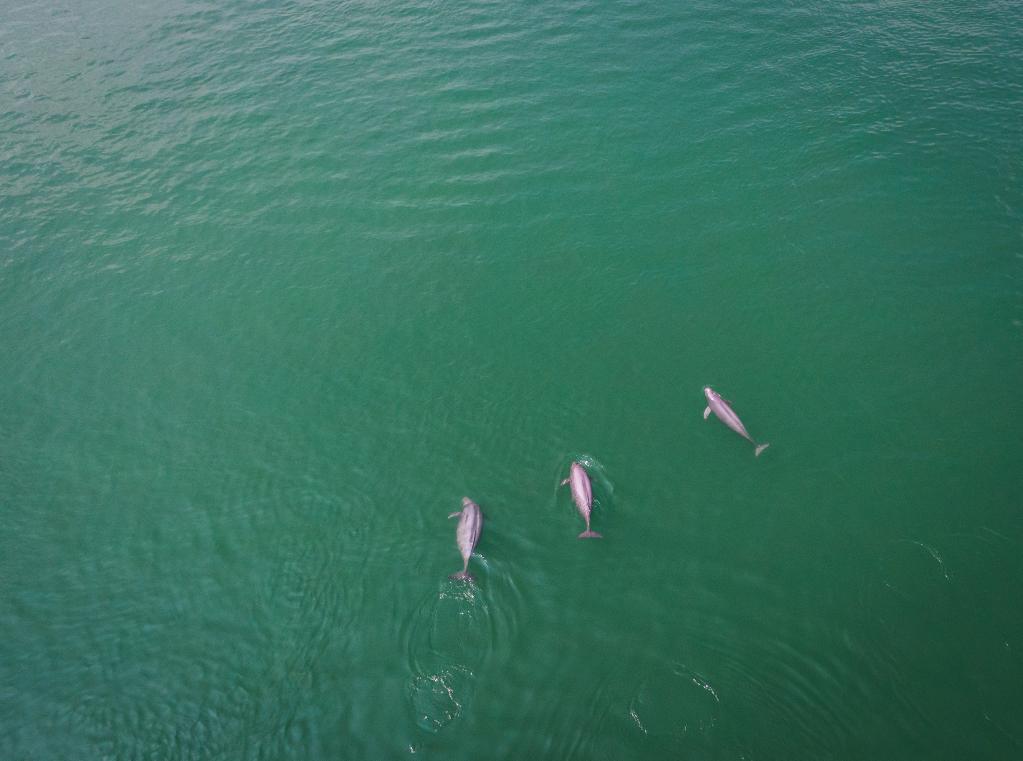 2021年5月11日,在湖北省宜昌市,长江江豚在水中嬉戏。新华社记者 肖艺九 摄