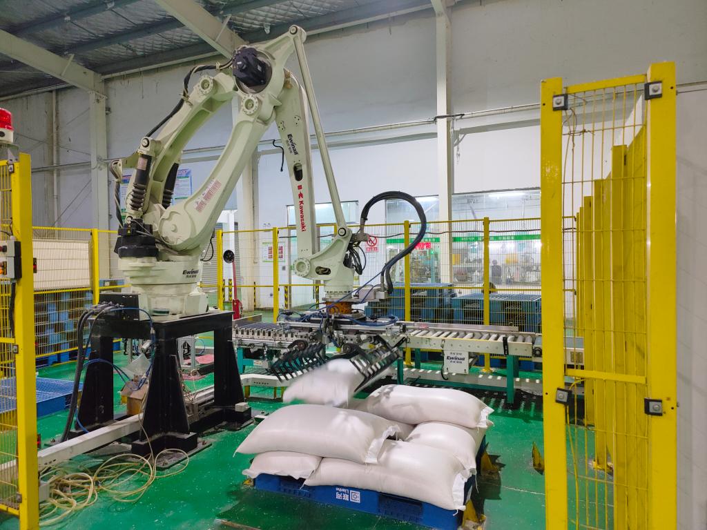 机器人“抓起”一袋大米,“转身”将之堆放在一起……位于望江经济开发区的安徽联河股份有限公司,通过订单引导农户种植的优质大米整装待发,将走上千家万户的餐桌。公司董事长甘启斌介绍,前不久开工投资约5亿元的稻米深加工及副产物综合利用项目,预计明年投产后将大幅增加公司产值,力求探索把稻谷产业链条中的衍生品“吃干榨净”。