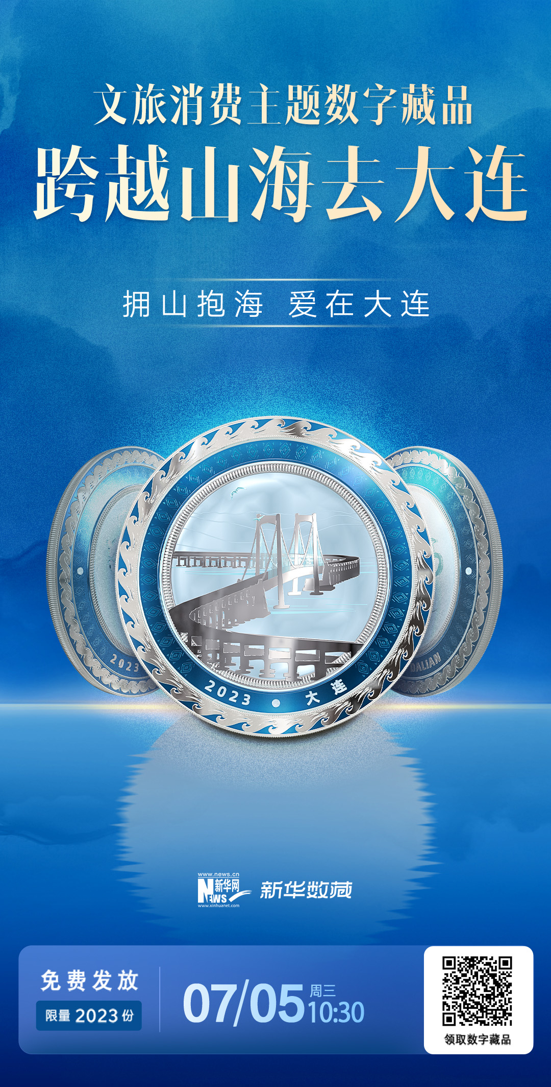 这款数字藏品以纪念币形式呈现,正面是以大连重要地标跨海大桥为原型进行浮雕立体感打造,并衬以精致的海浪花纹;背面雕刻的“跨越山海去大连”字样,是这座“浪漫之都”发出的盛情邀请。新华数藏以藏品为载体,充分挖掘大连地域特色文化元素,将大连城市文化魅力以动态化的方式呈现在数字世界,通过数字化手段,拓展文化表达的广度和深度,连通线上线下文旅消费场景,推动大连文旅产业创新升级。