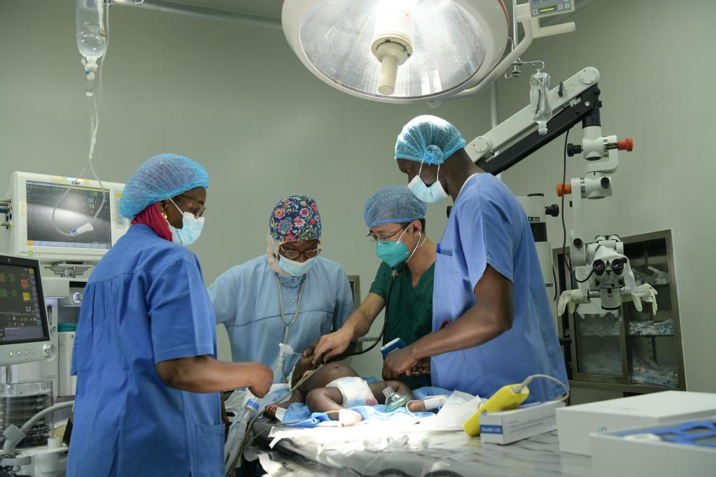 “感谢中国!”在一台挽救3岁儿童生命的紧急手术后,塞内加尔医生竖着大拇指对中国医生黄建斌说。