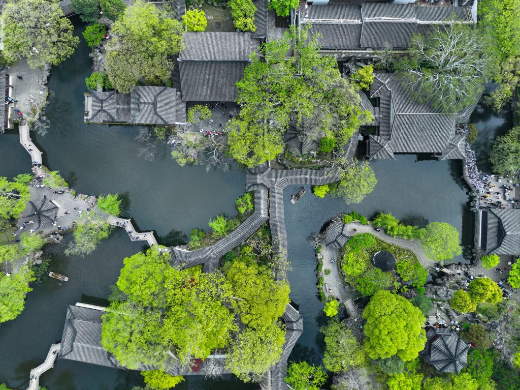 2023年4月5日拍摄的苏州拙政园一景(无人机照片)。新华社记者 李博 摄