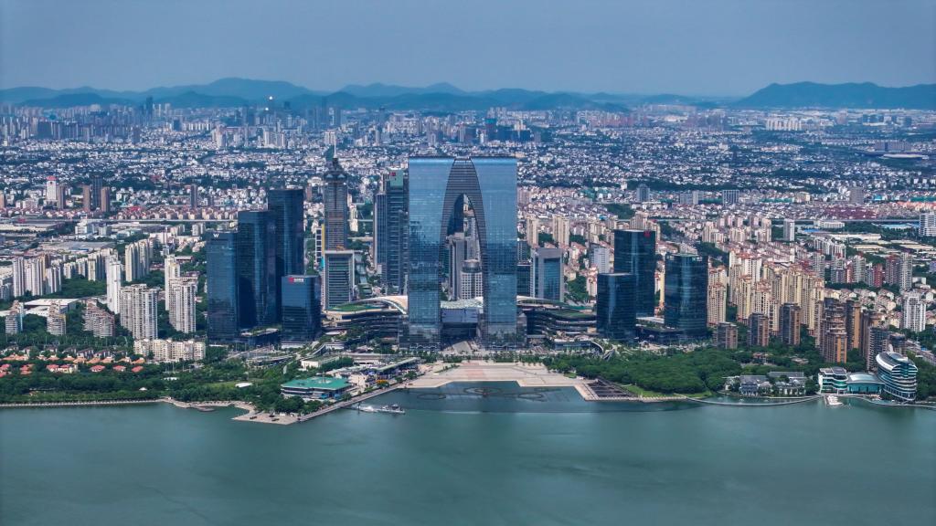 金鸡湖畔,苏州地标“东方之门”高耸入云。永远争第一、创唯一的苏州工业园区,奋力推开连接世界的“开放之门”,竞逐全球产业高地。
