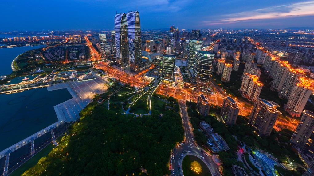 无人机近日拍摄的苏州工业园区夜景。新华社记者 李博 摄