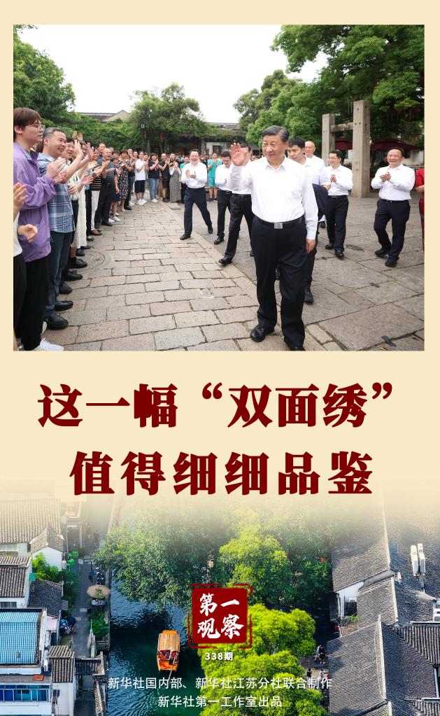工业园区、企业、历史文化街区、科学实验室……从苏州到南京,习近平总书记在江苏的考察行程,蕴含着对经济与文化辩证关系的深邃思考,犹如苏绣至品“双面绣”——一面与另一面从不是相互排斥,而是相得益彰、相互成就。
