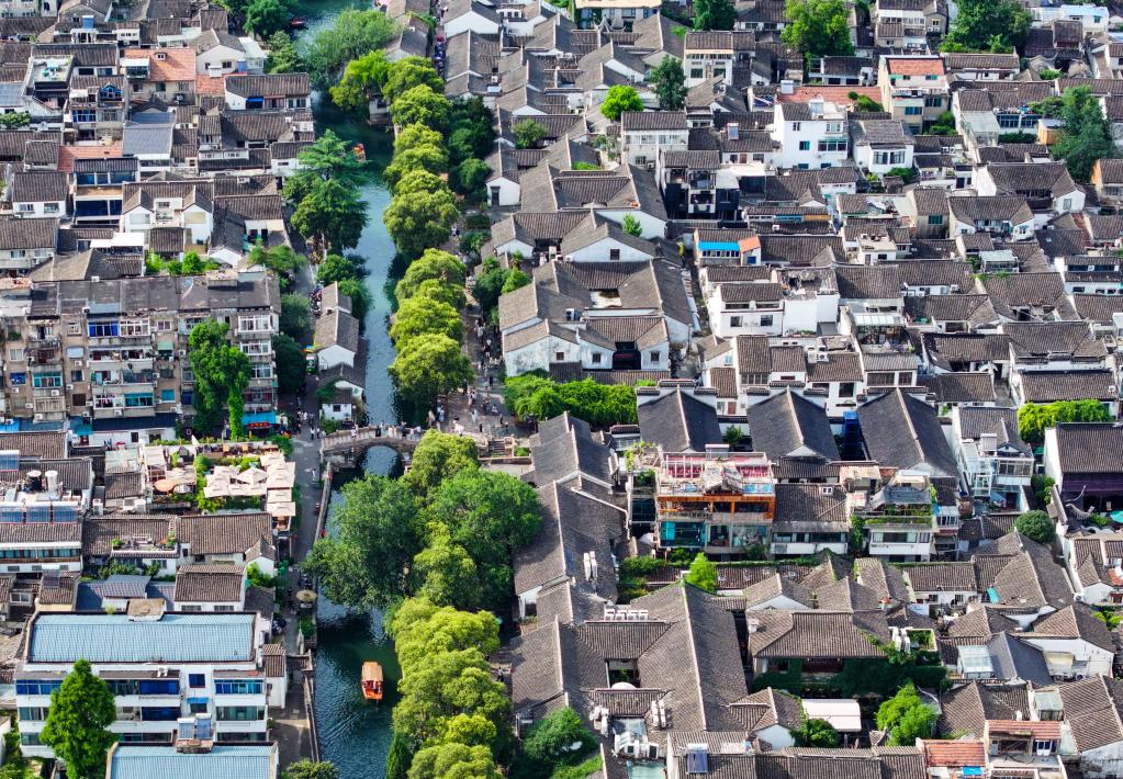 7月3日拍摄的苏州平江历史文化街区(无人机照片)。新华社记者 李博 摄