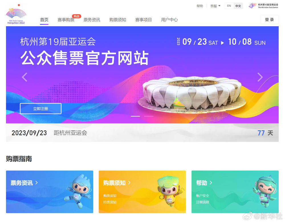 第19届杭州亚运会将在2023年9月23日至10月8日举办。7月8日上午10时,杭州亚运会公众售票官网正式上线,部分项目不同场次的门票开放购买,公众可进入官网选购,或者通过支付宝搜索“智能亚运一站通”小程序,点击“票务通”购买门票。后续公众可以通过杭州亚运会官方宣传渠道,第一时间了解杭州亚运会最新票务资讯、各类门票开售信息等。