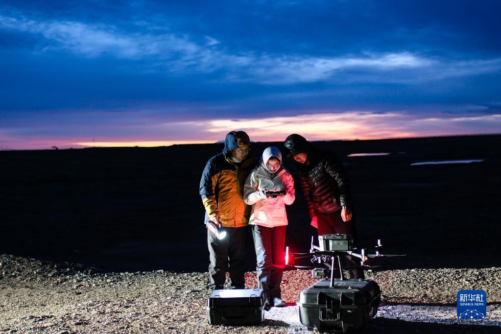 6月16日凌晨,连新明团队在青藏公路楚玛尔河大桥附近监测藏羚羊迁徙途中的夜宿地。