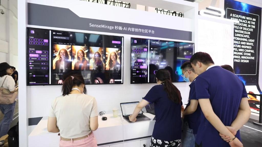 简单输入文字,几秒就能生成图画、创意、文本等,百度“文心一言”“文心一格”、商汤“秒画”等生成式人工智能产品,通过自然对话方式理解和执行用户任务,吸引众多参展观众体验。