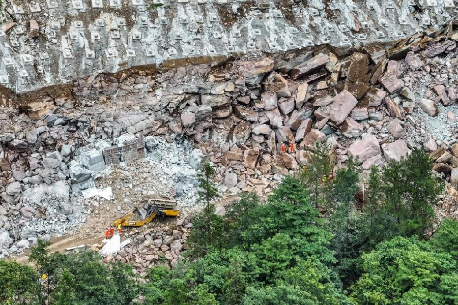 7月9日拍摄的滑坡现场(无人机照片)。新华社记者 伍志尊 摄
