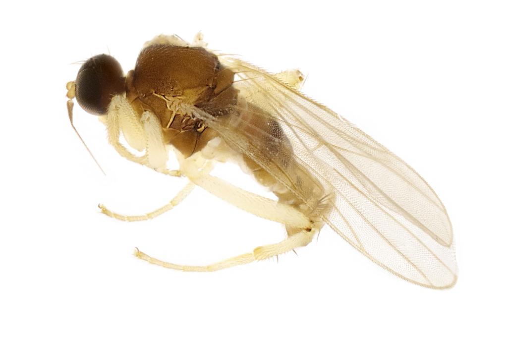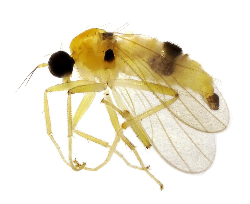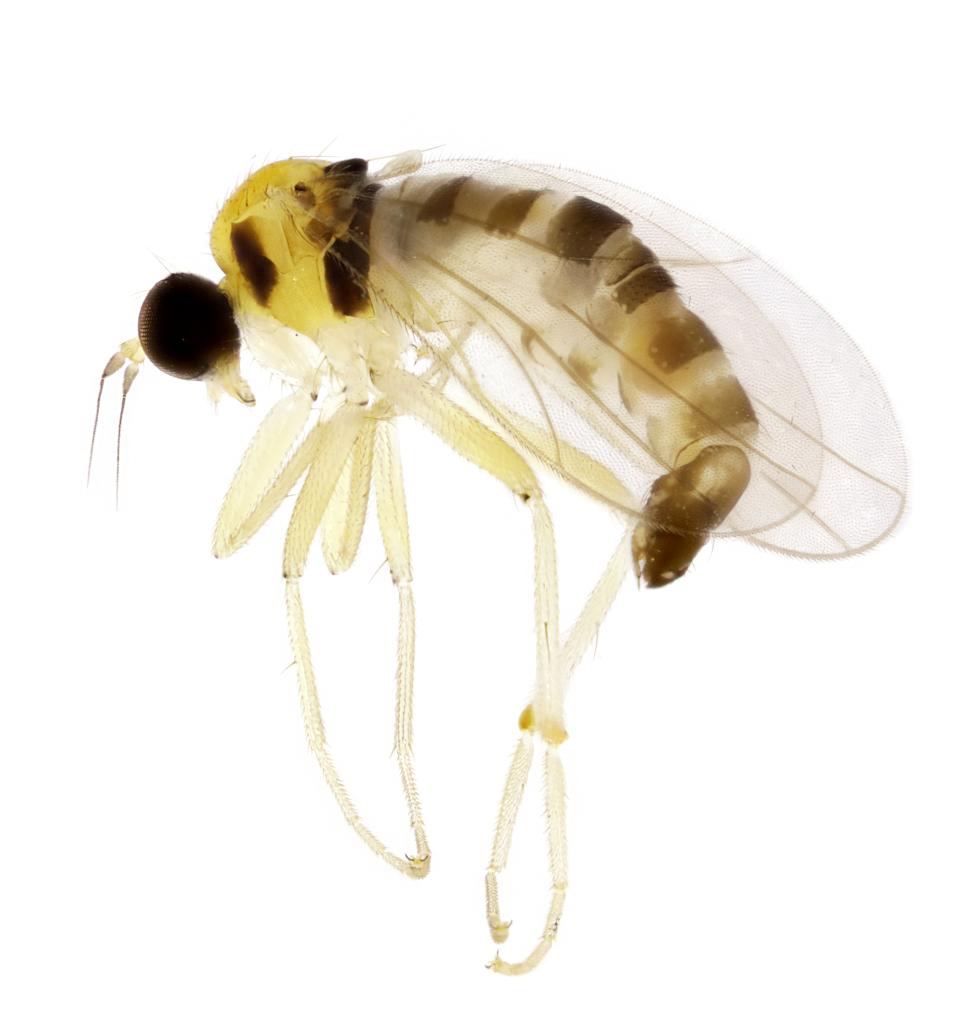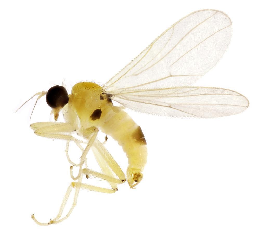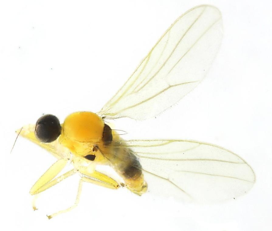 生态环境部南京环境科学研究所副研究员马方舟介绍,黄隐肩舞虻类昆虫体形普遍较小,成虫体长介于1.8毫米至2.8毫米之间,雄虫腹部末端粗大,雌虫尖细。它们的幼虫在地被物下、石块下或土中生活,成虫陆生,多在植物表面和地上活动。捕食猎物主要包括木虱、蚜虫、介壳虫、蚊、蝇及螨类等重要的经济害虫或卫生害虫。