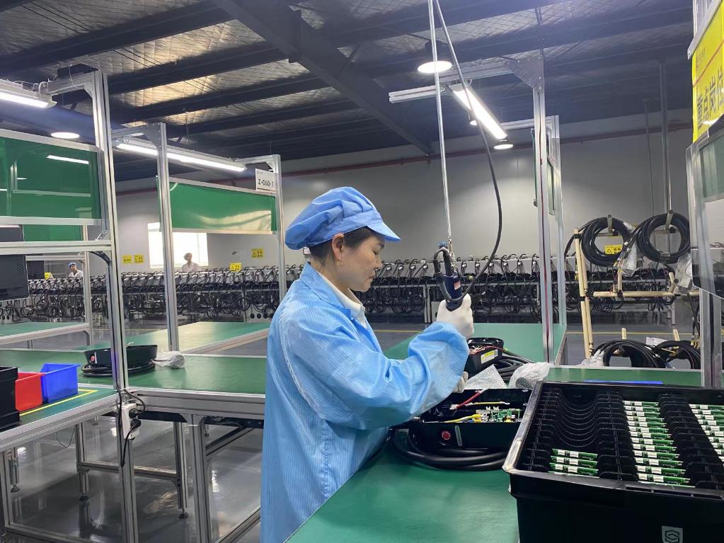 安徽能通新能源科技有限公司充电桩组装生产线上,工人们正在忙碌。(资料图)