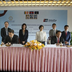 在柬埔寨,超90%的商户广泛受理使用银联卡,主流银行累计发行银联卡数十万张。银联国际与柬埔寨央行约定,推动当地支付系统旗下钱包接入银联移动支付服务;共同推动实现受理柬本地二维码标准的商户使用银联标准二维码钱包。