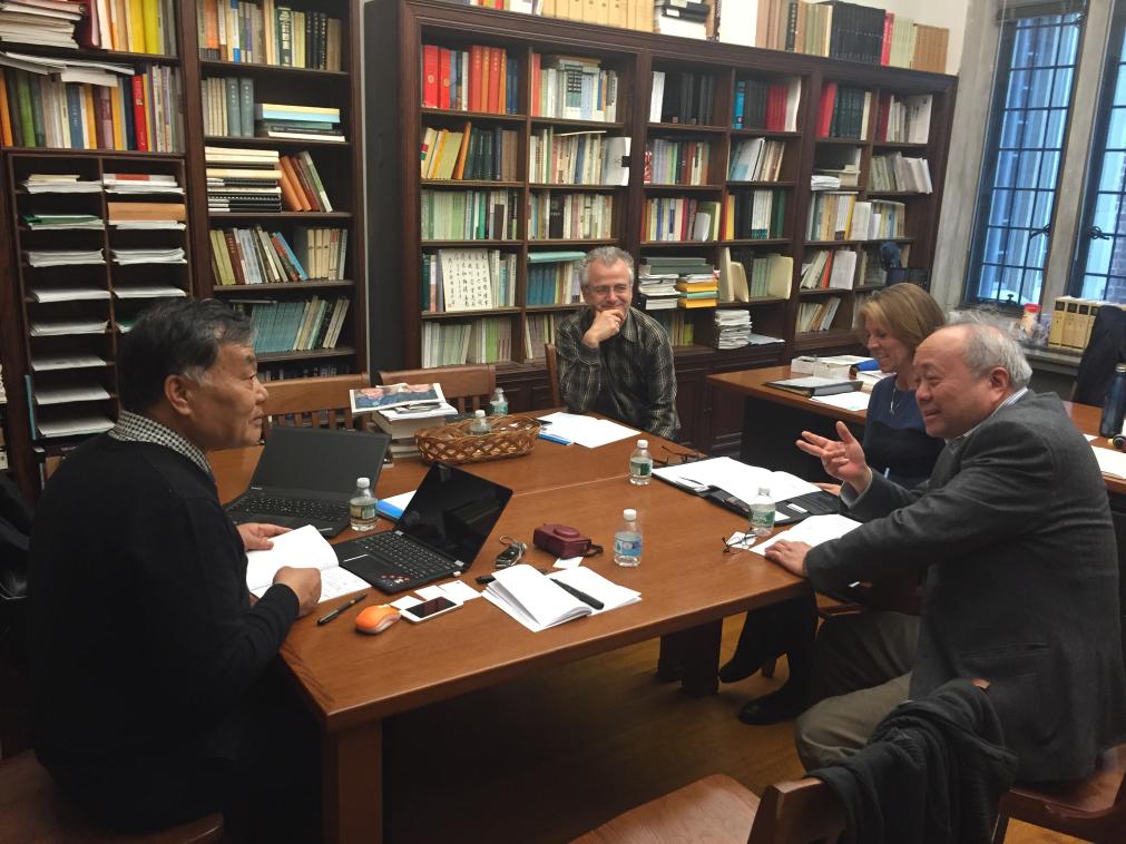 合璧工程团队专家正在校对书稿。(新华社记者萧海川 摄)