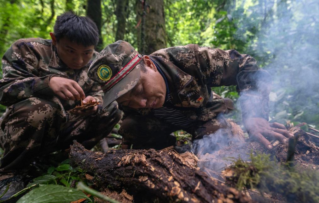 “这就是我们工作的意义和价值。工作虽然艰苦,但是我们把这些珍贵的动植物保护下来了。”何贵品继续讲述,“我参加巡护工作28年了,每次深度巡护都跟家人离别很长一段时间,所到地方经常没有手机信号,这是常人不能接受的。一个火塘、一杯清茶、一堆故事,就是我们夜晚度过的最愉快的时光。”