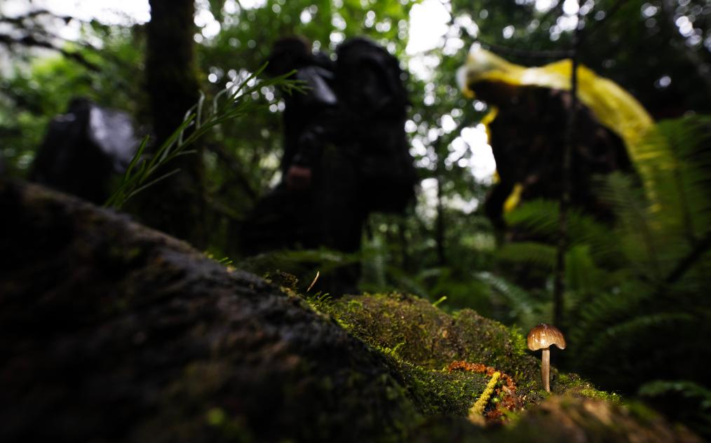 这条深度巡护之路,比记者预想的要艰难百倍:雨林中没有路,各种植物密密麻麻、盘根错节。负责开路的欧学军手持大砍刀,硬是从密林中砍出一条勉强容人穿过的小径。