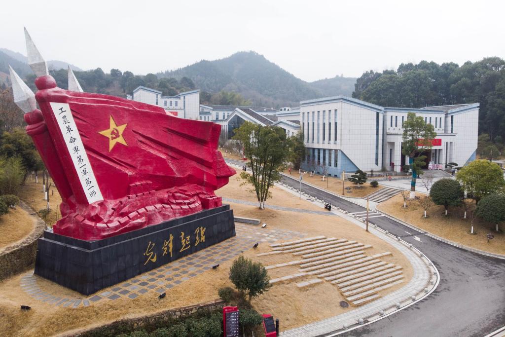 这是2021年1月26日在湖南省浏阳市文家市镇秋收广场拍摄的红旗雕塑。