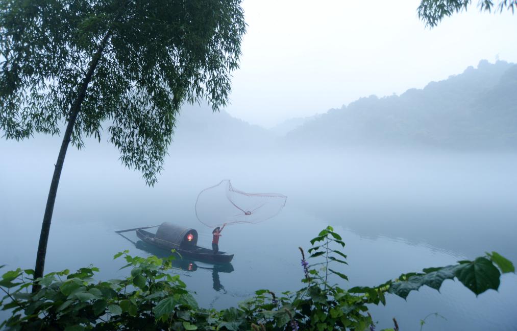 渔网撒向江面