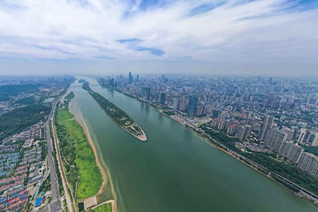 在长沙城区拍摄的湘江及两岸景色。