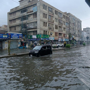 7月7日,车辆在巴基斯坦海得拉巴积水的道路上行进。海得拉巴当日的强降雨导致路面积水,给人们出行带来不便。新华社发