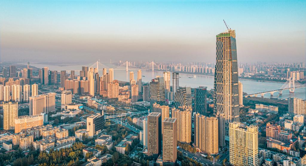 这是无人机航拍的武汉市江岸区景观。(陈卓 摄)