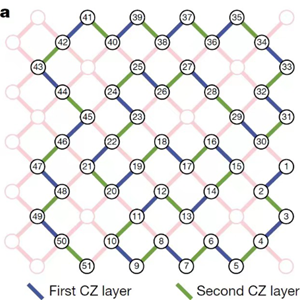 利用“祖冲之二号”完成的51比特一维簇态制备的线路及量子态保真度结果。(研究团队供图)