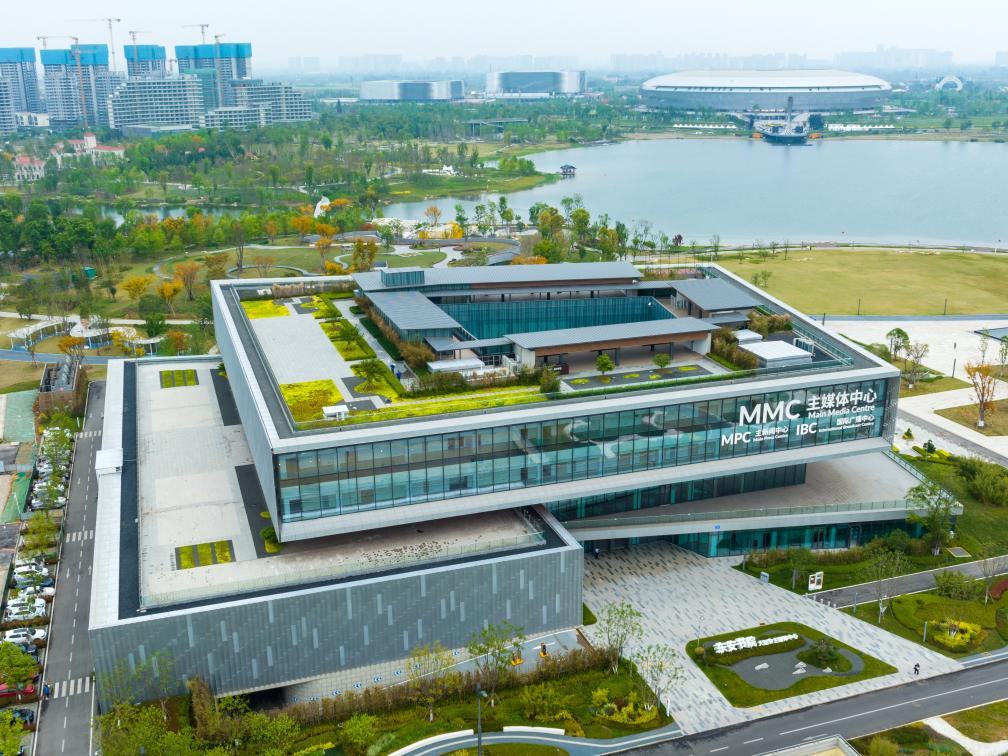 这是4月18日拍摄的成都大运会主媒体中心。新华社记者沈伯韩摄
