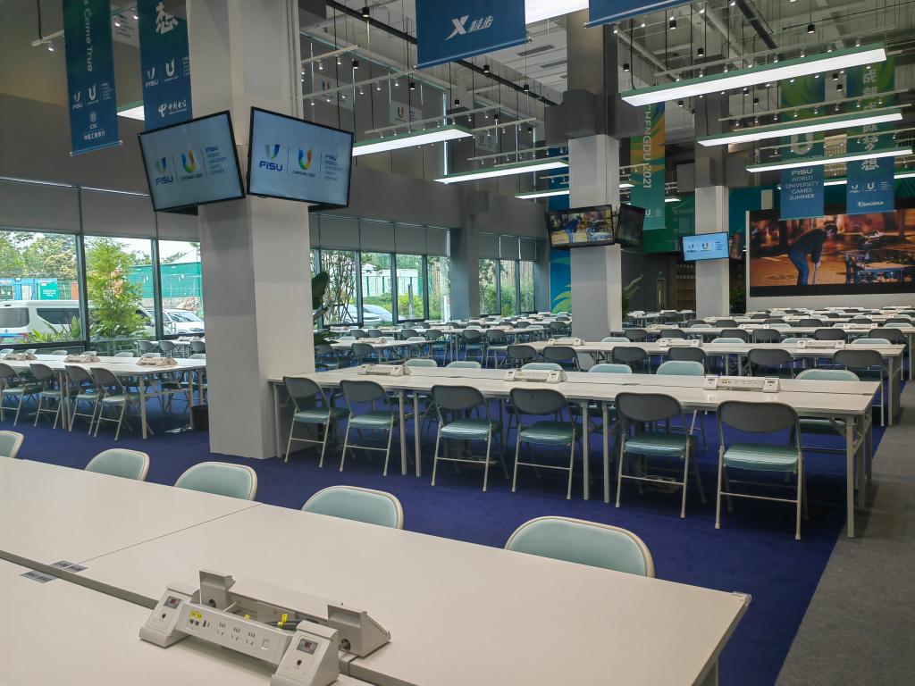 成都大运会主媒体中心内的媒体工作区。新华社记者董小红摄