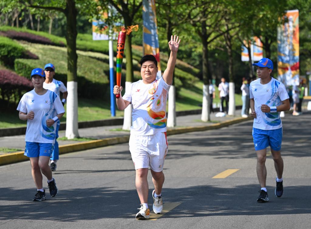 7月8日,火炬手王柯皓在火炬传递中。新华社记者胥冰洁摄