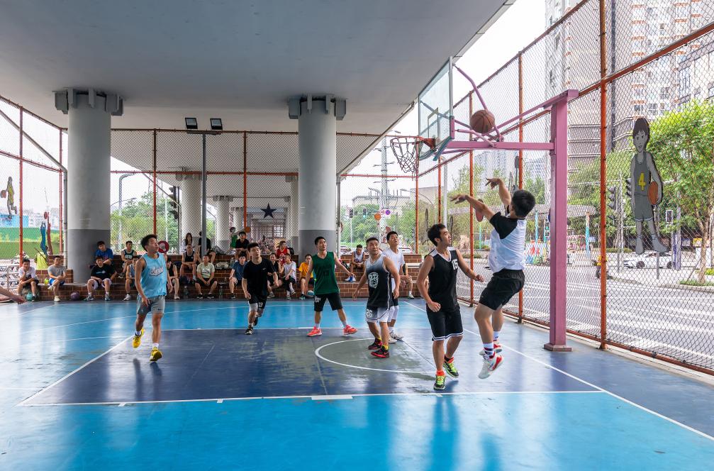 2022年6月12日,年轻人在成都市府青路立交下的运动空间打篮球。新华社发(杜宁摄)
