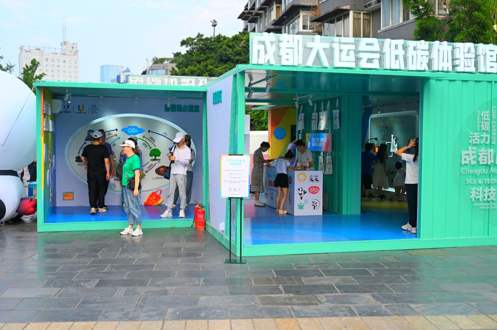 在成都大运会低碳体验馆内,低碳魔方、碳循环灯箱、动力单车、能源小屋等科技感十足的体验装置吸引了不少市民的关注。“绿色”是成都大运会的鲜明特色。同时,通过发挥“低碳大运”的示范效应,成都绿色新经济也在蓬勃生长。